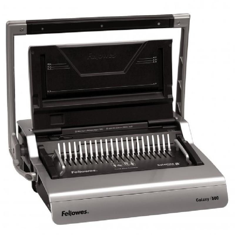 Jedinečné provedení robustního vázacího stroje s uživatelsky samostatně provozovatelnou vázací jednotkou nabízí model Fellowes Galaxy. Děrovací kapacita až 28 listů 80g papíru. Kapacita vazby až 500 listů. Možnost nastavení vzdálenosti děr od okraje svazku (pro formát A5).