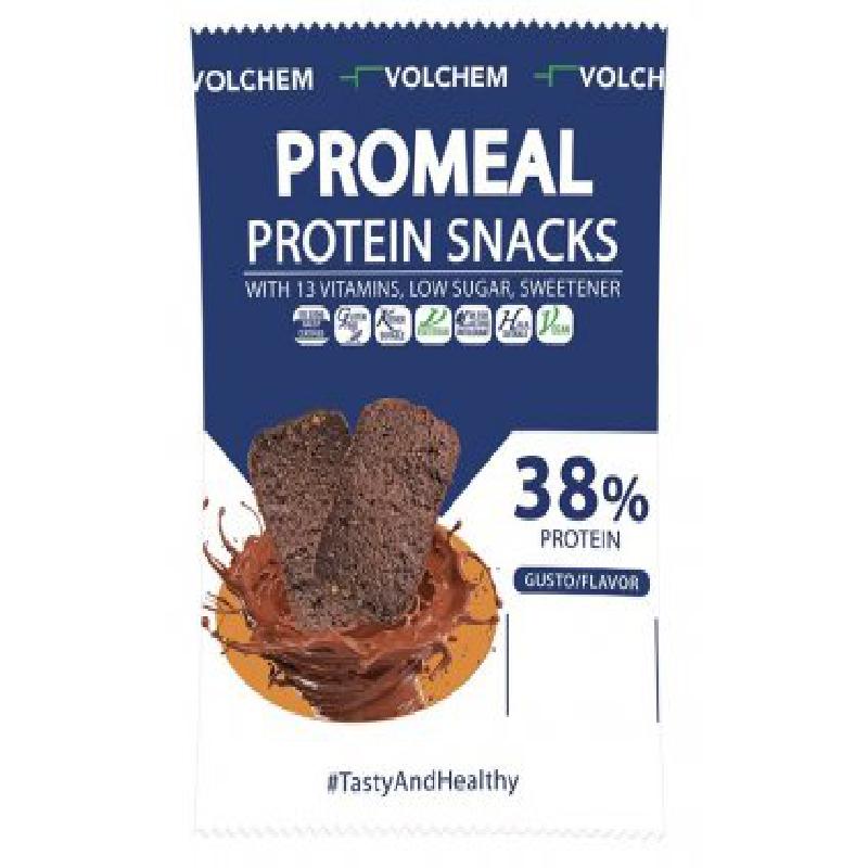 VOLCHEM Promeal Protein Snacks 38 % je dobře stravitelná svačina, která se hodí do každé situace. Protein Snacks můžete využít v práci, ve škole nebo na cestách. Na tyčinkách si nejen pochutnáte, ale také zaženete hlad a doplníte kvalitní bílkoviny. Čokoláda v tyčinkách obsahuje minimálně 54 % kakaa, 38 % sójové bílkoviny, neobsahují lepek ani laktózu a jsou tedy vhodné pro vegetariány i vegany.