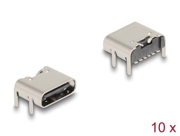 Delock 6-pinový SMD konektor USB 5 Gbps USB Type-C™, zásuvkový, k montáži pájením, pravoúhlý 90°, 10 ks