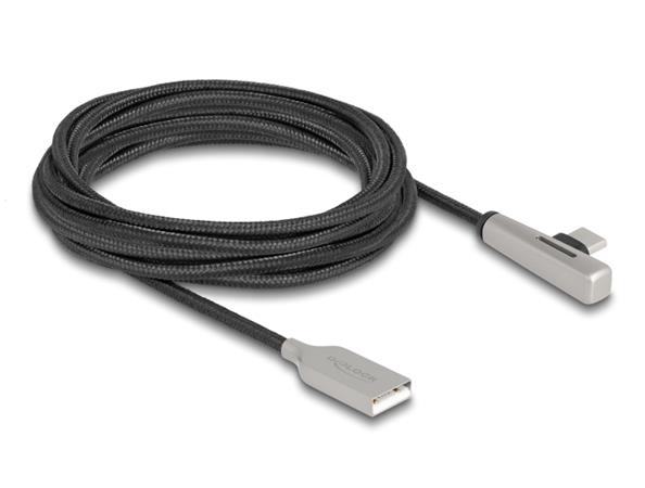Delock Kabel ze zástrčky USB 2.0 Typ-A na zástrčku USB Type-C™, pravoúhlý, s LED a s funkcí rychlého nabíjení 60 W, 3 m