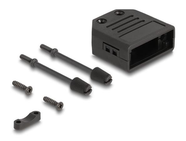 Delock Kryt D-Sub na 9 pinový zástrčkový / zásuvkový plastový kryt s uvolňováním napětí, černý