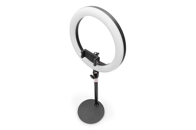- DIGITUS 10palcové LED kruhové světlo stolní se stativovým stojanem a držákem na chytrý telefon, stmívatelné světlo