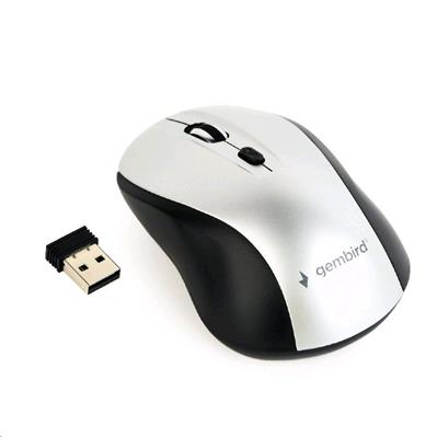 - GEMBIRD Myš MUSW-4B-02-BS, černo-stříbrná, bezdrátová, USB nano receiver