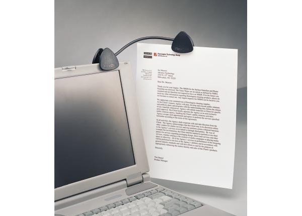 - Ohebné rameno („husí krk“) pomáhá zajistit pohodlné umístění dokumentů