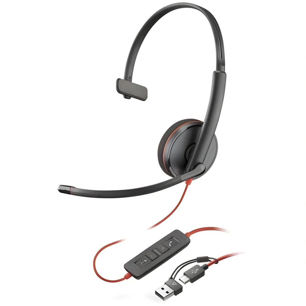 Poly Blackwire 3210 náhlavní souprava, USB-C/A adaptér, mono