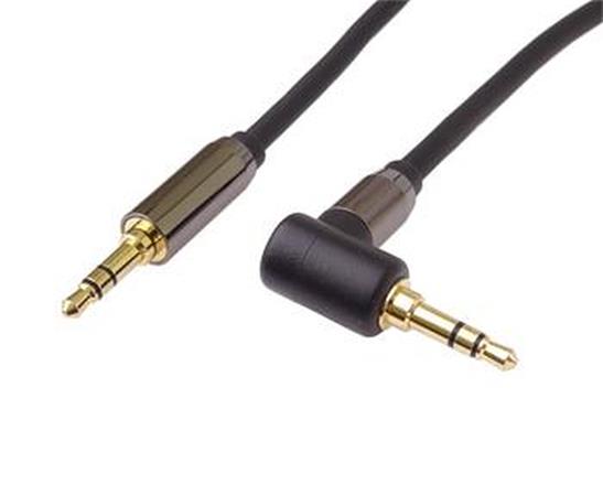 - PremiumCord HQ stíněný kabel stereo Jack 3.5mm - Jack 3.5mm zahnutý 90° 5m