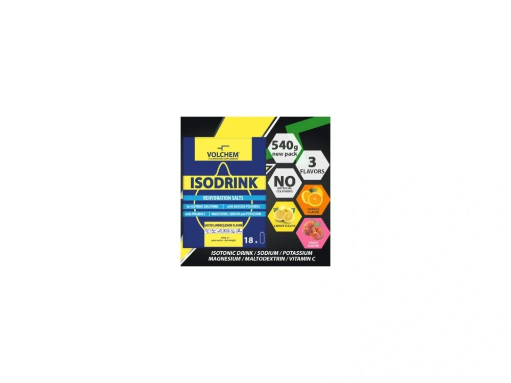 VOLCHEM Isodrink je sportovní nápoj s obsahem energie ve formě glukózových polymerů a fruktózy, zároveň obsahuje široké spektrum minerálů, které ztrácíme v průběhu fyzické a sportovní zátěže. Všechny tyto složky jsou obsaženy v poměru, který umožňuje jejich optimální využití v průběhu zátěže a zároveň dochází k efektivnímu rehydrataci.